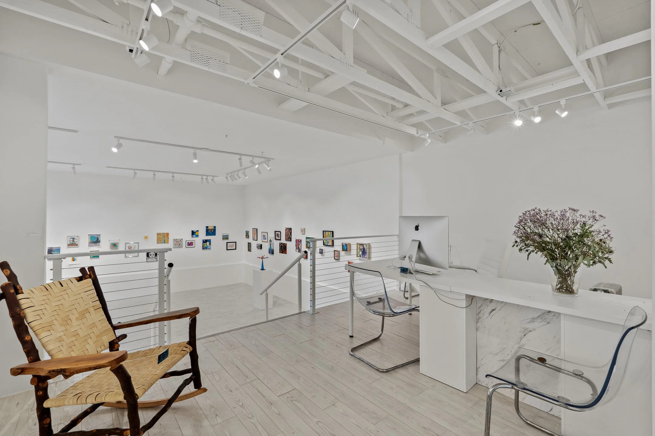 The studio is open to the gallery, 4 steps above the gallery, allowing visitors and collectors to visit you in-studio while you work, while also enjoying your solo exhibition in the gallery.